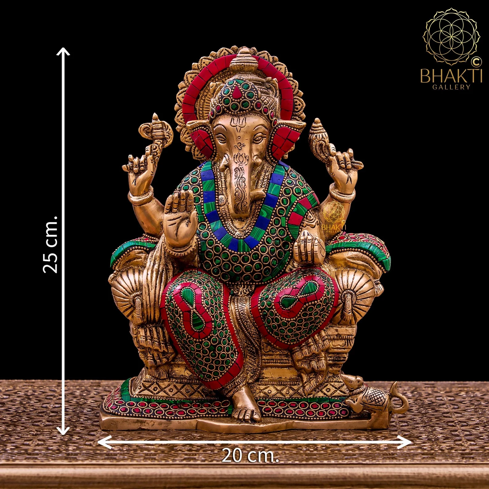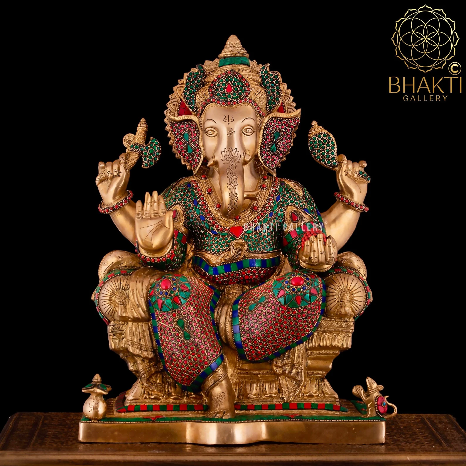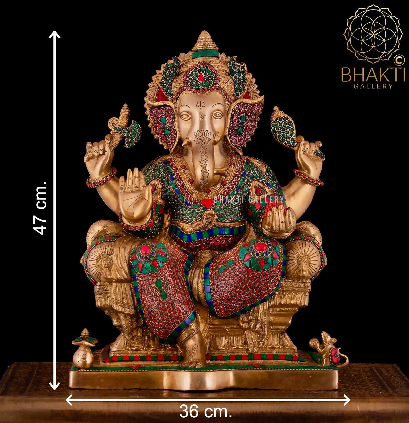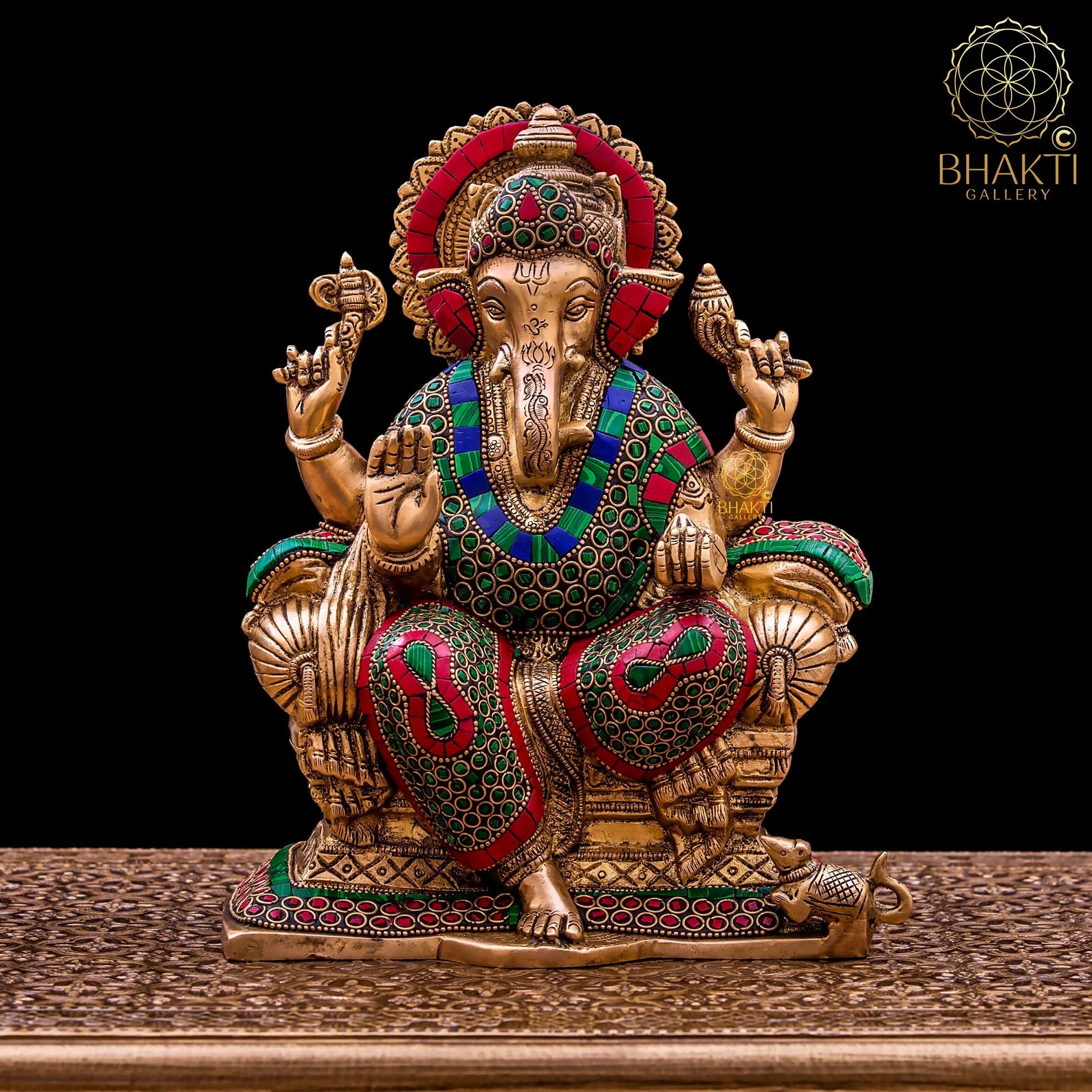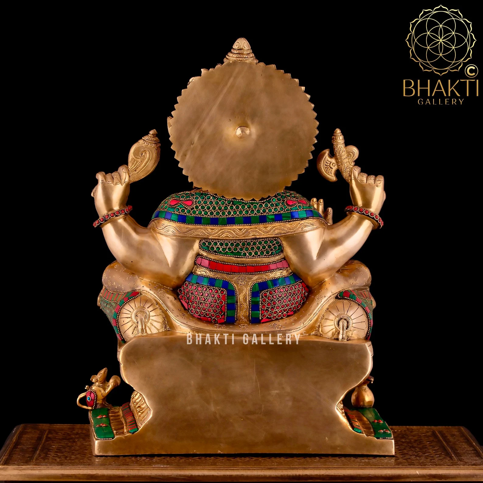 This Large Brass Ganesha Statue with Mosaic Stonework is an elegant and spiritually powerful representation of Lord Ganesha — the Remover of Obstacles and the divine guide for success and wisdom. Crafted in solid brass and adorned with intricate mosaic stone detailing, this sculpture blends traditional devotion with refined artistic beauty.