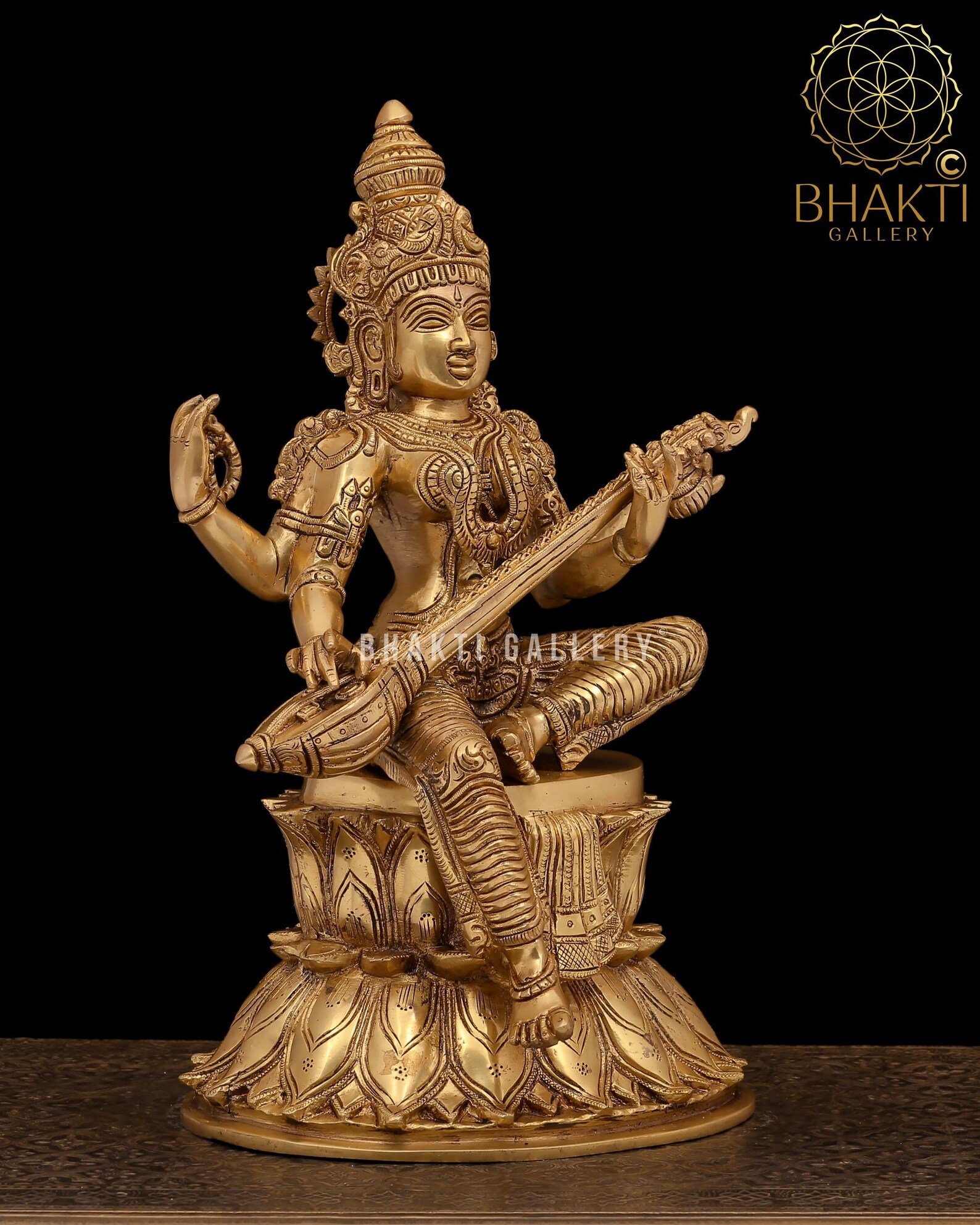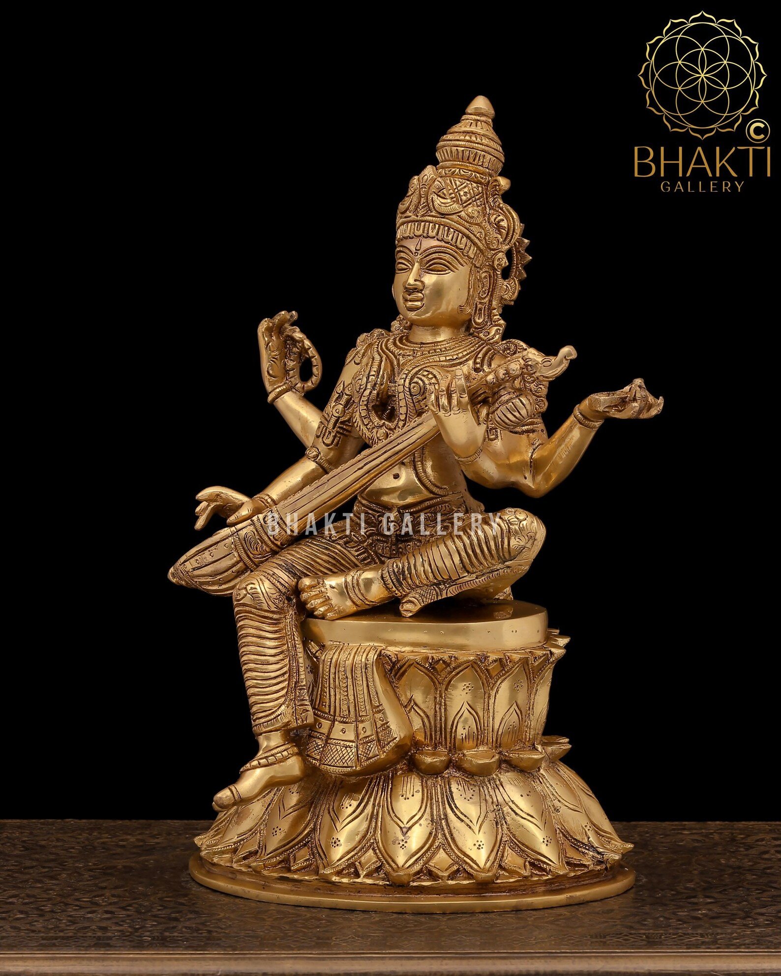 Home / Hindu Goddess Statue / Large Brass Goddess Saraswati Statue, 38 cm Golden Finish Idol, Hindu Goddess of Knowledge, Music & Arts