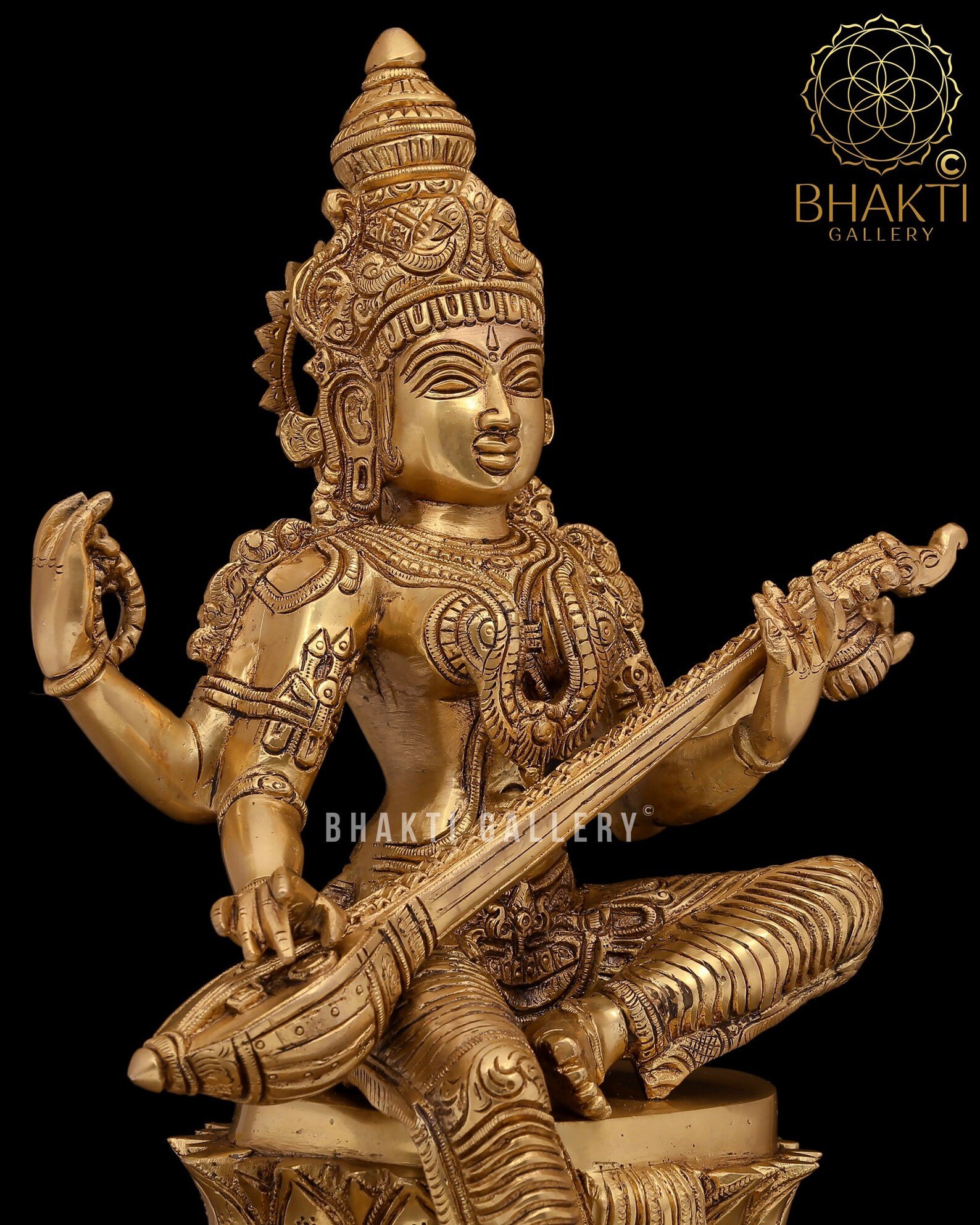 Schools, libraries, and learning spaces are considered her temples, and offerings such as books, pens, musical instruments, and artistic tools are traditionally used in her worship. This beautifully handcrafted large brass Goddess Saraswati statue with a rich golden finish is ideal for home temples, educational institutions, libraries, cultural spaces, and grand pooja rooms.