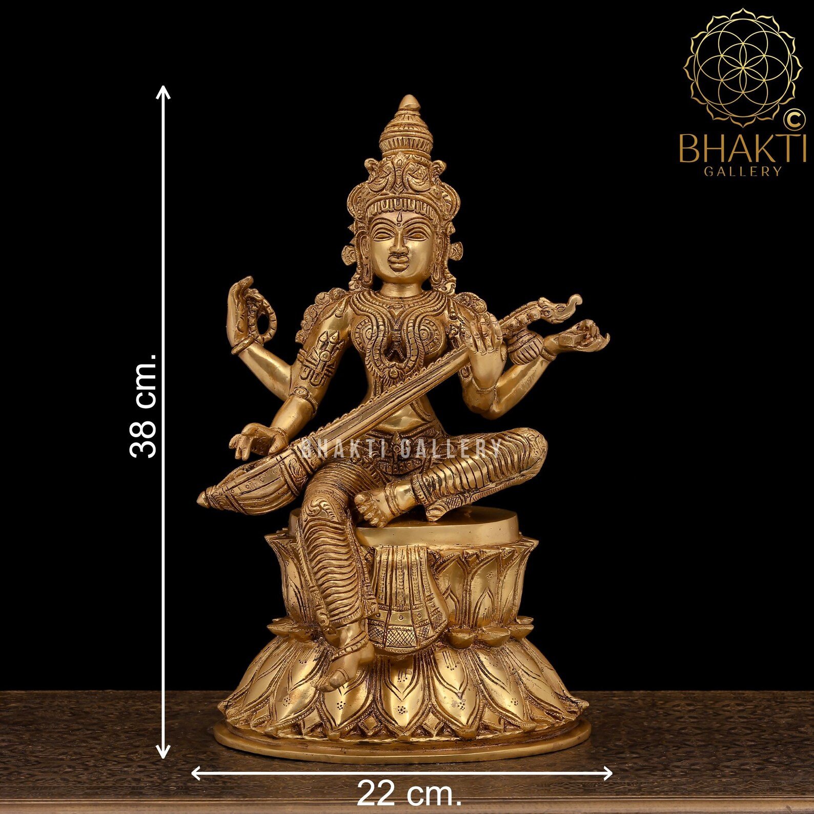 Invite knowledge, wisdom, and creative energy into your space with this large 38 cm Brass Goddess Saraswati statue in an elegant golden finish. Symbolizing learning, music, and the arts, this beautifully handcrafted idol is perfect for home temples, schools, libraries, cultural spaces, and auspicious occasions like Vasant Panchami.
