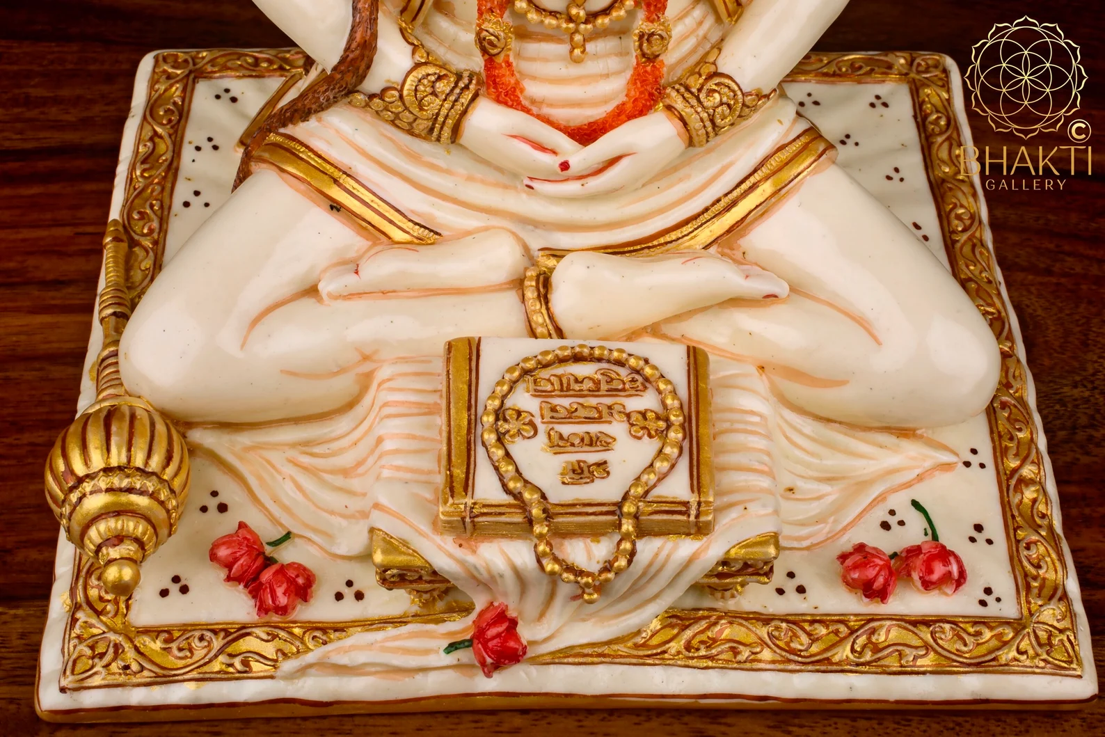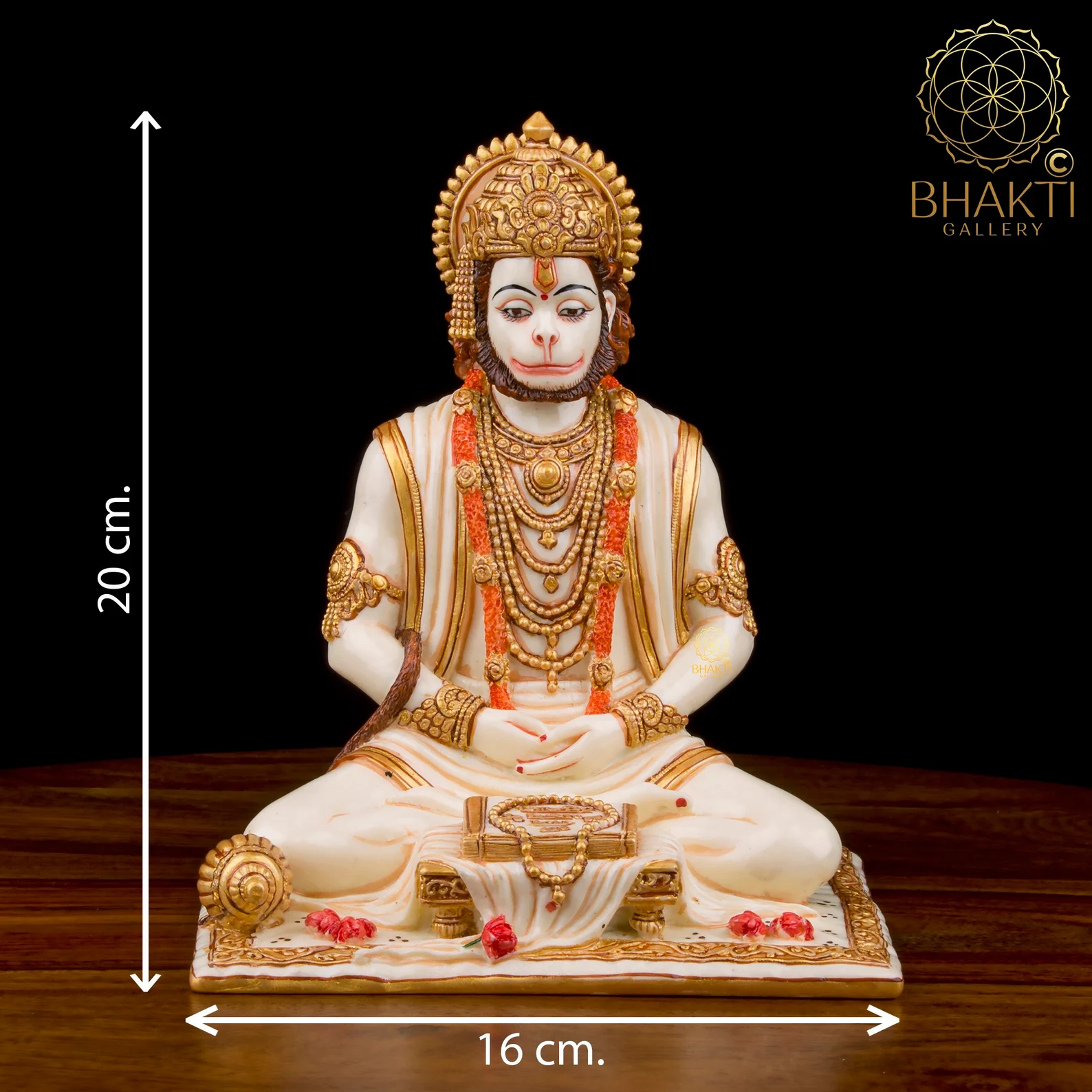 Invite peace, devotion, and inner strength into your sacred space with this Meditating Lord Hanuman statue, beautifully hand-painted in cultured marble. Depicting Hanuman in a calm, meditative posture, this idol symbolizes pure bhakti, self-control, celibacy (brahmacharya), inner discipline, and unwavering devotion to Lord Rama.