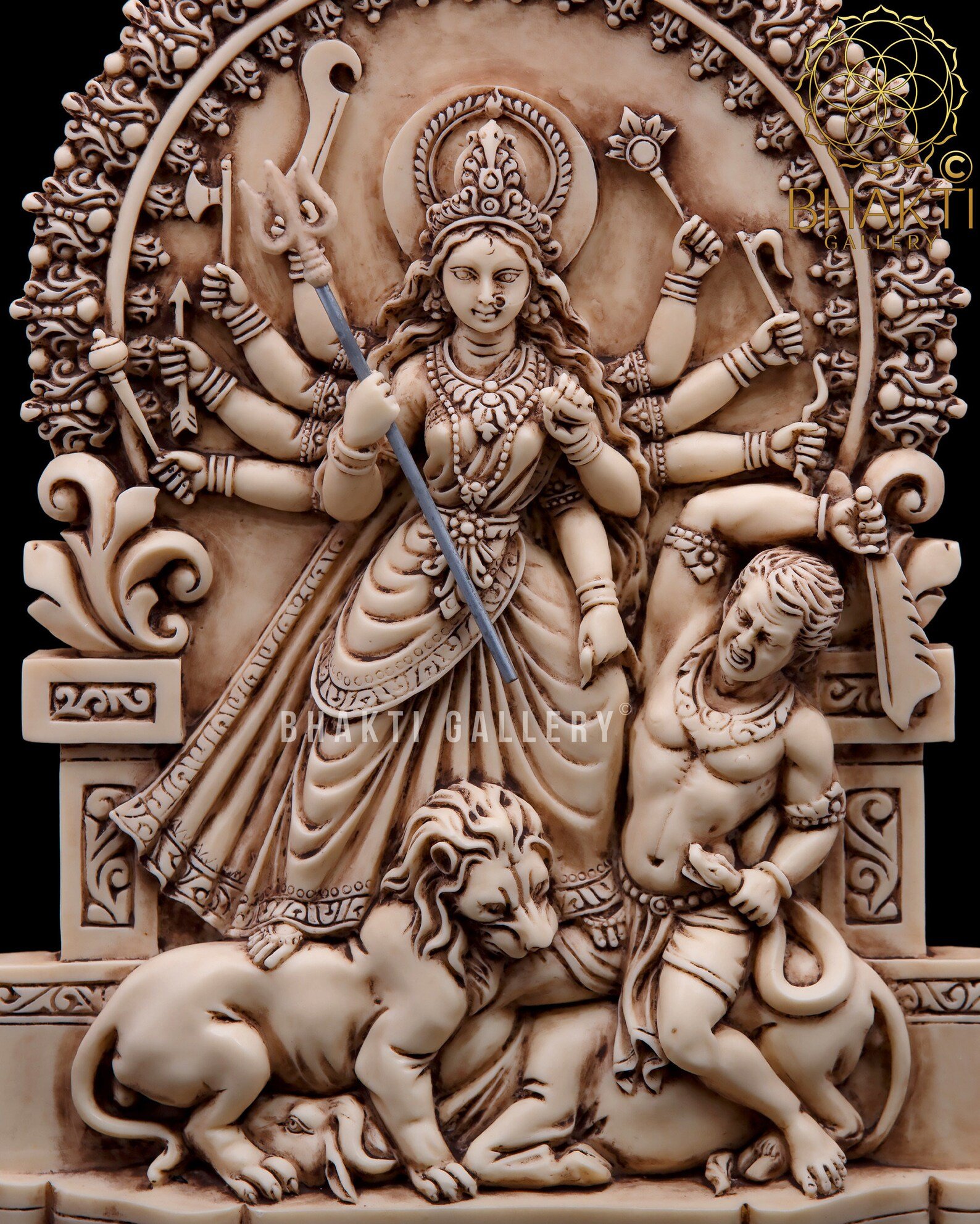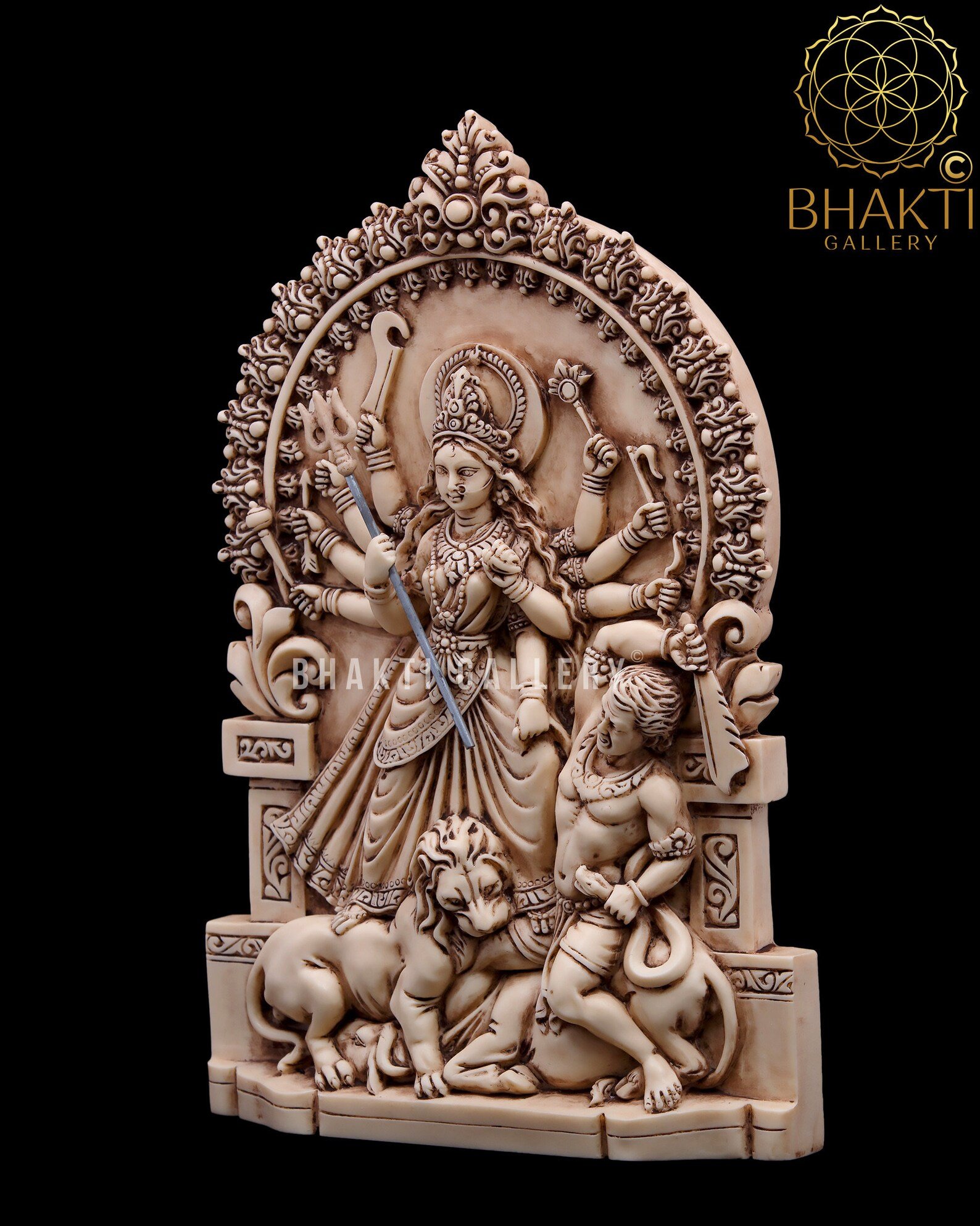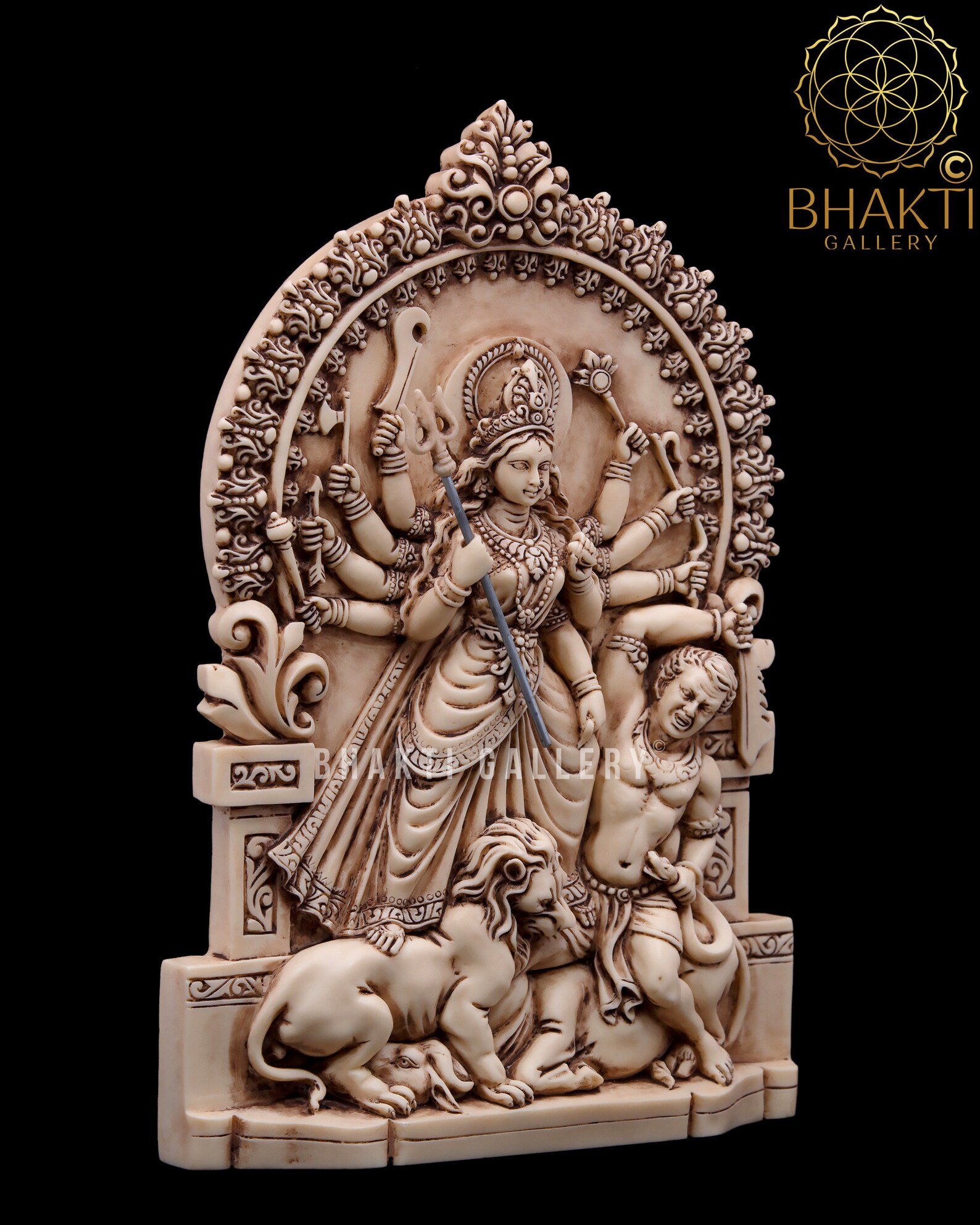 Home / Hindu Goddess Statue / Maa Durga Statue, 26 cm Ivory Finish Dust Marble Mahishasuramardini Idol, Bengali Durga Murti