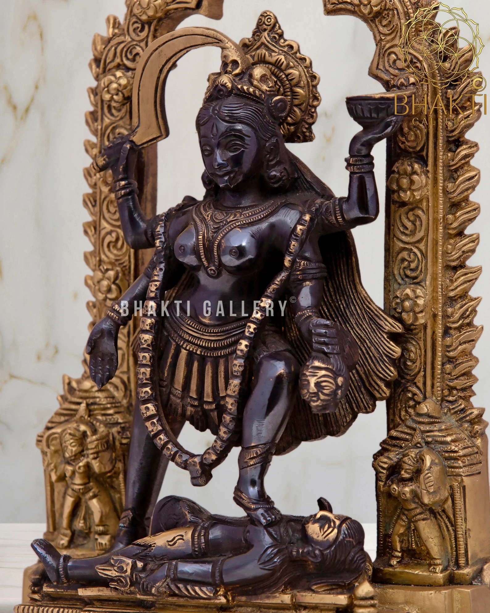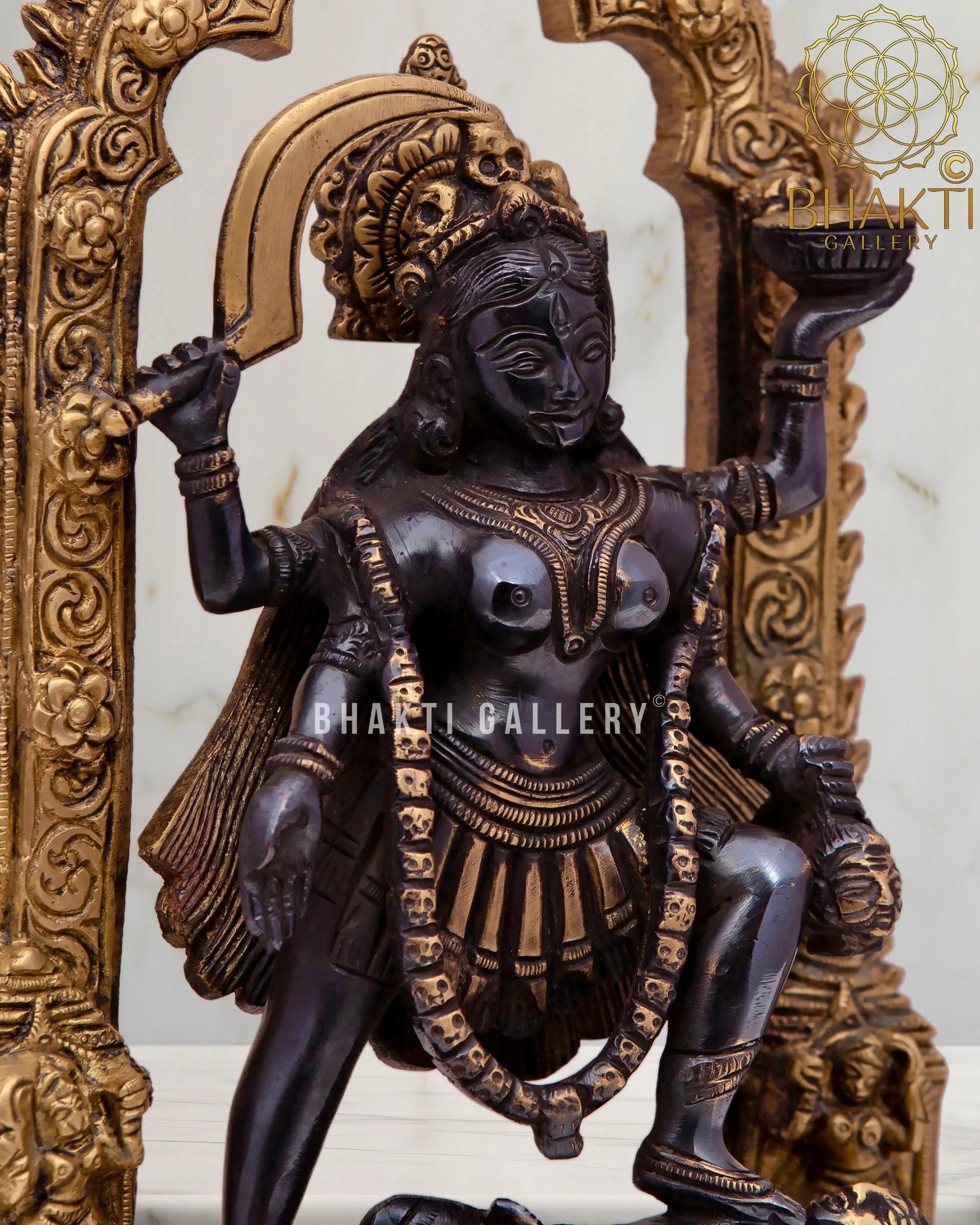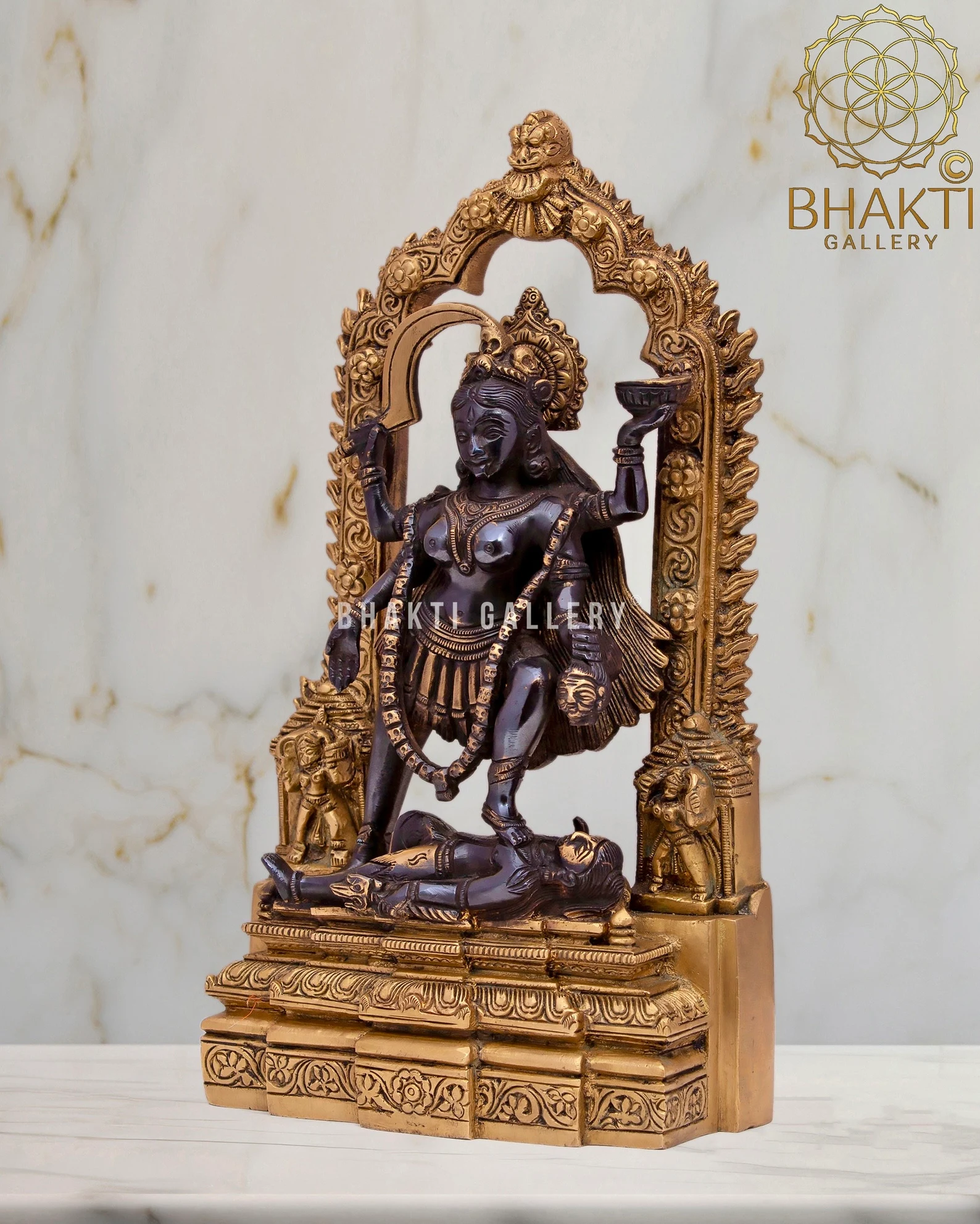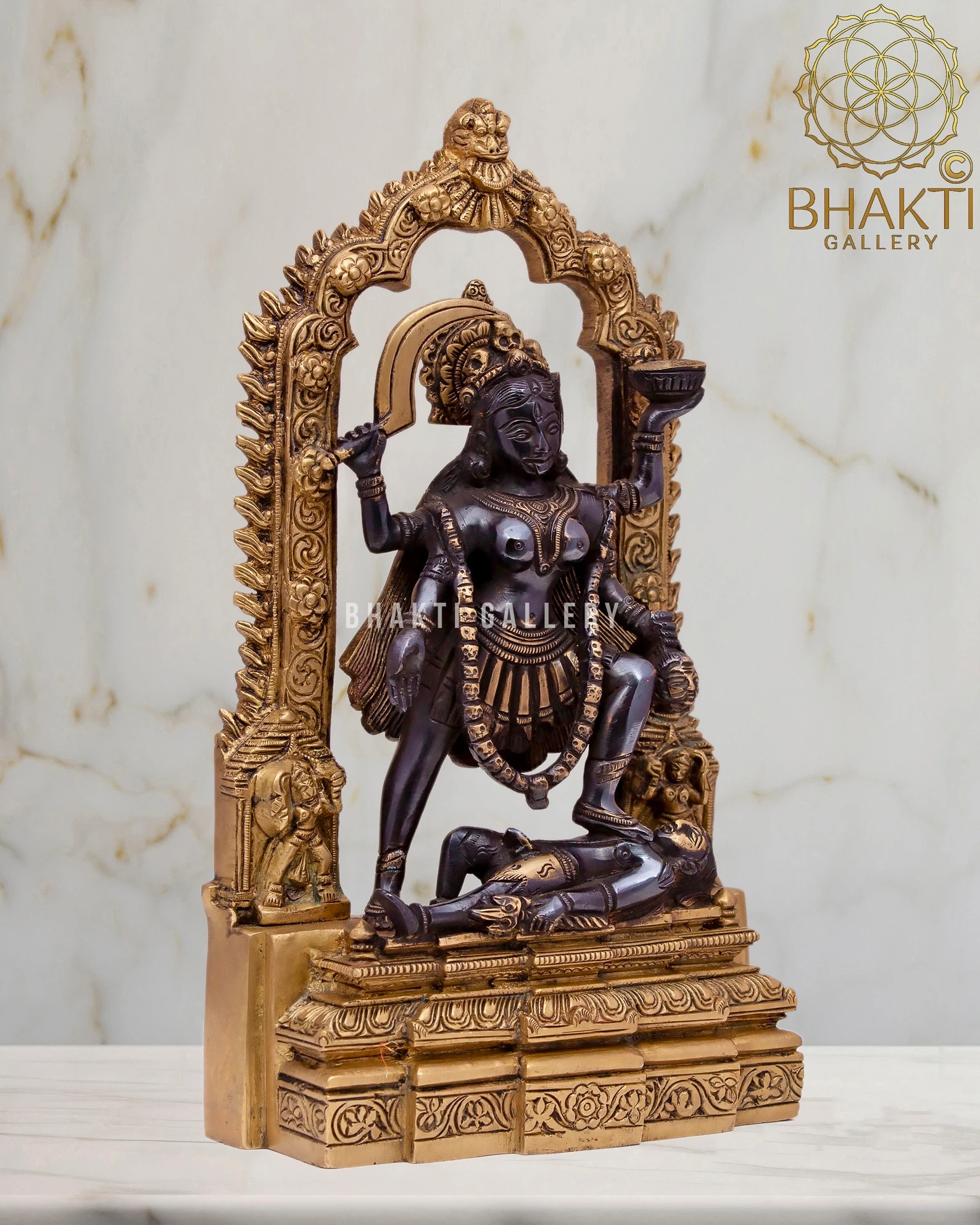 This big brass Goddess Kali statue with striking black and golden finish beautifully captures her immense power, protection, and transformative energy. Ideal for pooja rooms, temples, meditation spaces, and spiritual décor, this idol holds deep significance during Kali Puja, Navratri, and for devotees seeking strength, courage, and protection.