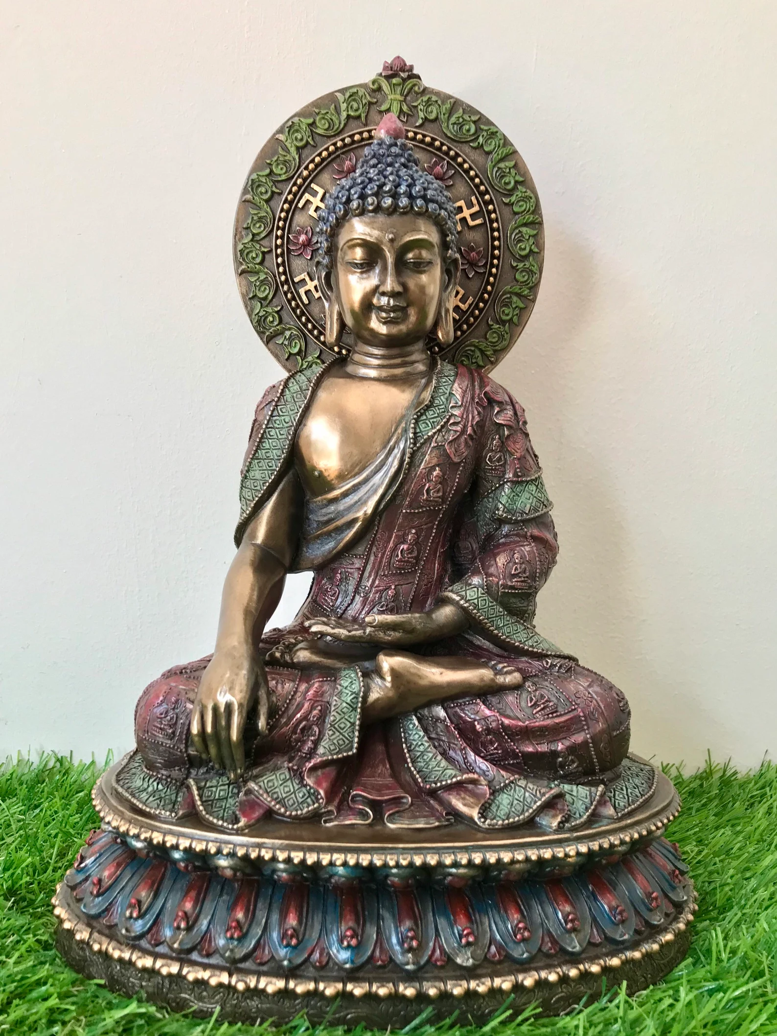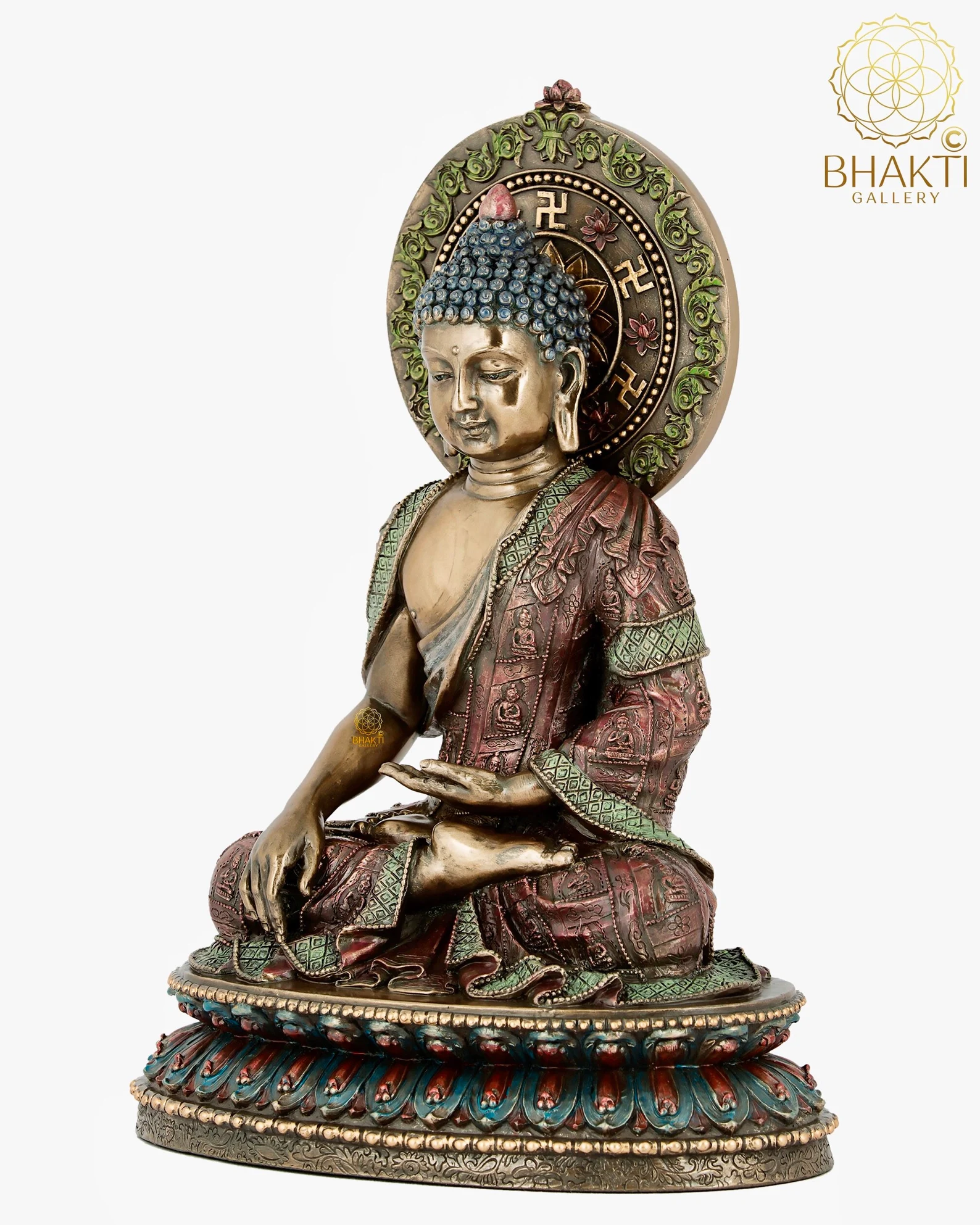 In the Earth-Witness Mudra, the Buddha’s right hand reaches toward the earth, calling it to bear witness to his enlightenment. This powerful gesture represents truth, stability, and unwavering resolve, making this statue especially suitable for spaces that seek calm, balance, and grounding energy.