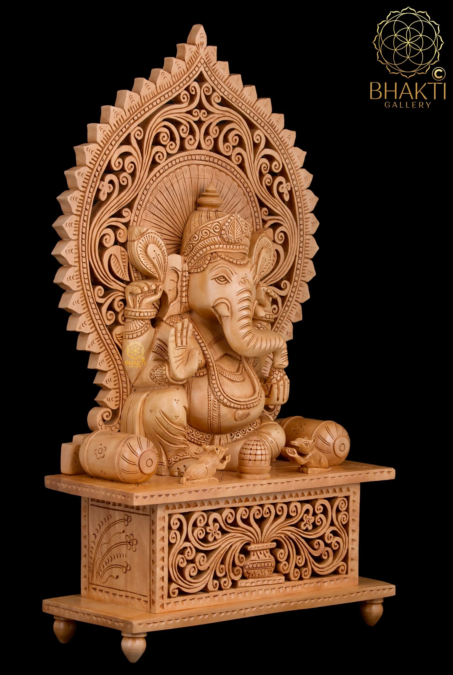 With its tall stature and balanced proportions, this wooden Ganesh idol serves as both a sacred presence and an elegant décor centerpiece.